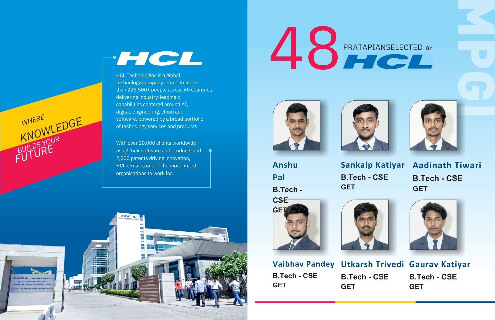 Celebrating the outstanding achievements of MPGI students placed at HCL. Discover their journey, top performers, and placement statistics.